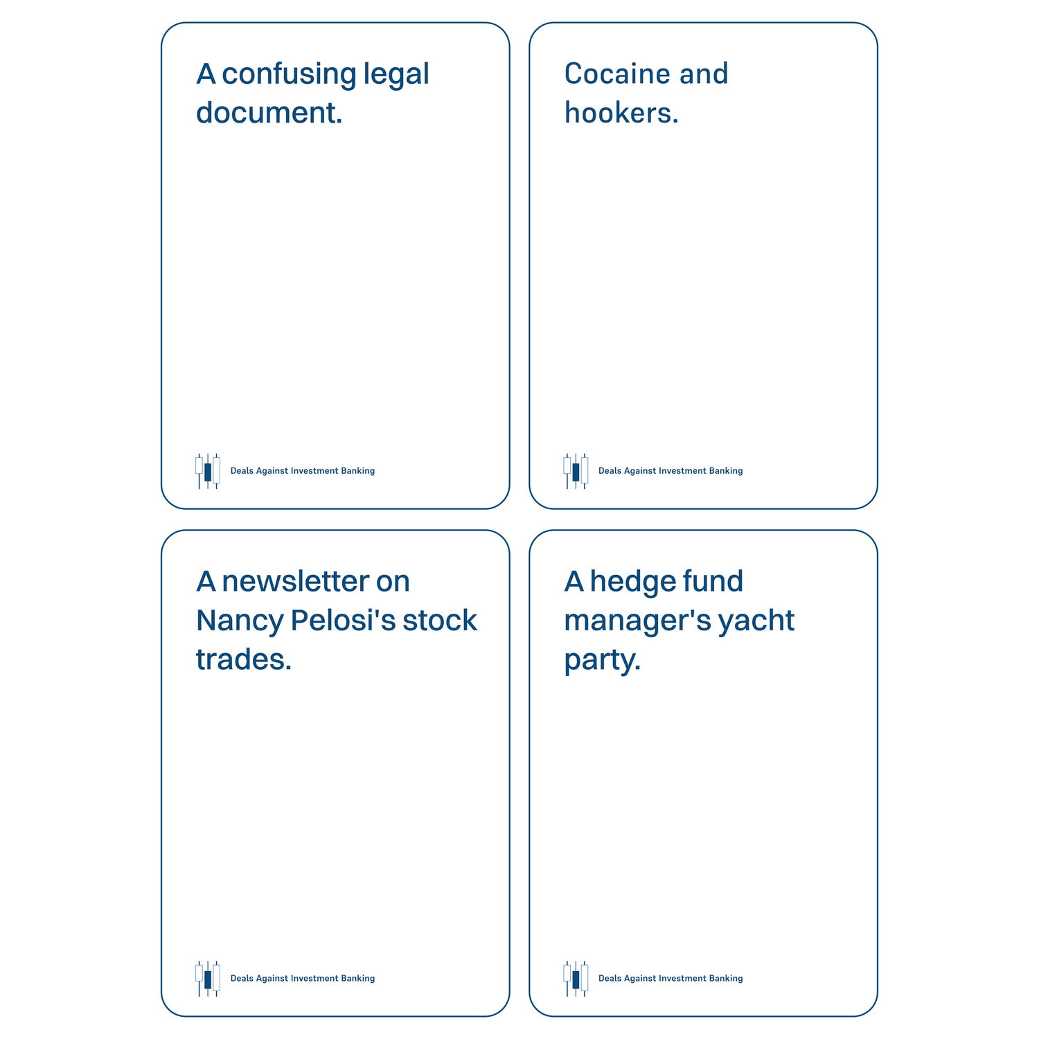 The ultimate tabletop game designed for financial wizards, aspiring finance bros, interns, and seasoned investment bankers.